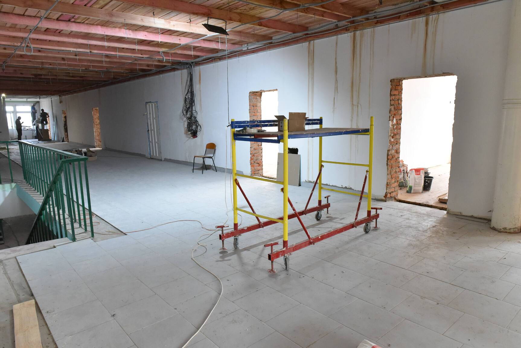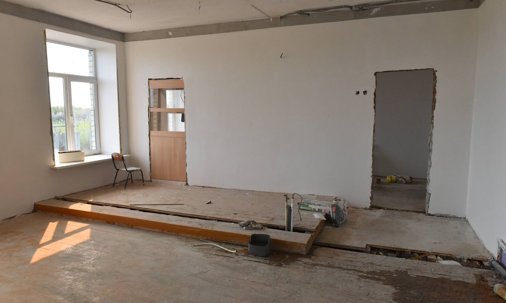 Завершаются работы по замене кровли, полностью будет заменено отопление, системы вентиляции, водоотведения и канализации, старые деревянные окна, двери, потолки, полы, лестницы, спортзал и пищеблок.