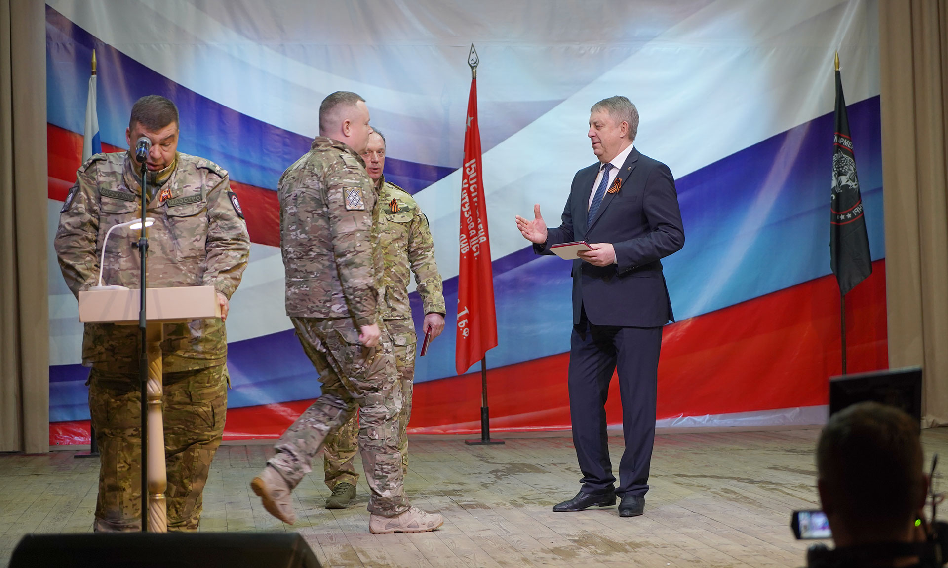 — Буквально два дня назад у нас был заместитель Министра обороны РФ Юнус-Бек Баматгиреевич Евкуров. Он посмотрел, как наши бойцы несут службу, и дал высокую оценку: наша бригада сегодня не только самая большая по численности, но и самая боеспособная. За это огромное спасибо командиру бригады БАРС-Брянск Сергею Сергеевичу Антошину, начальнику штаба Николаю Ивановичу Голубокому.