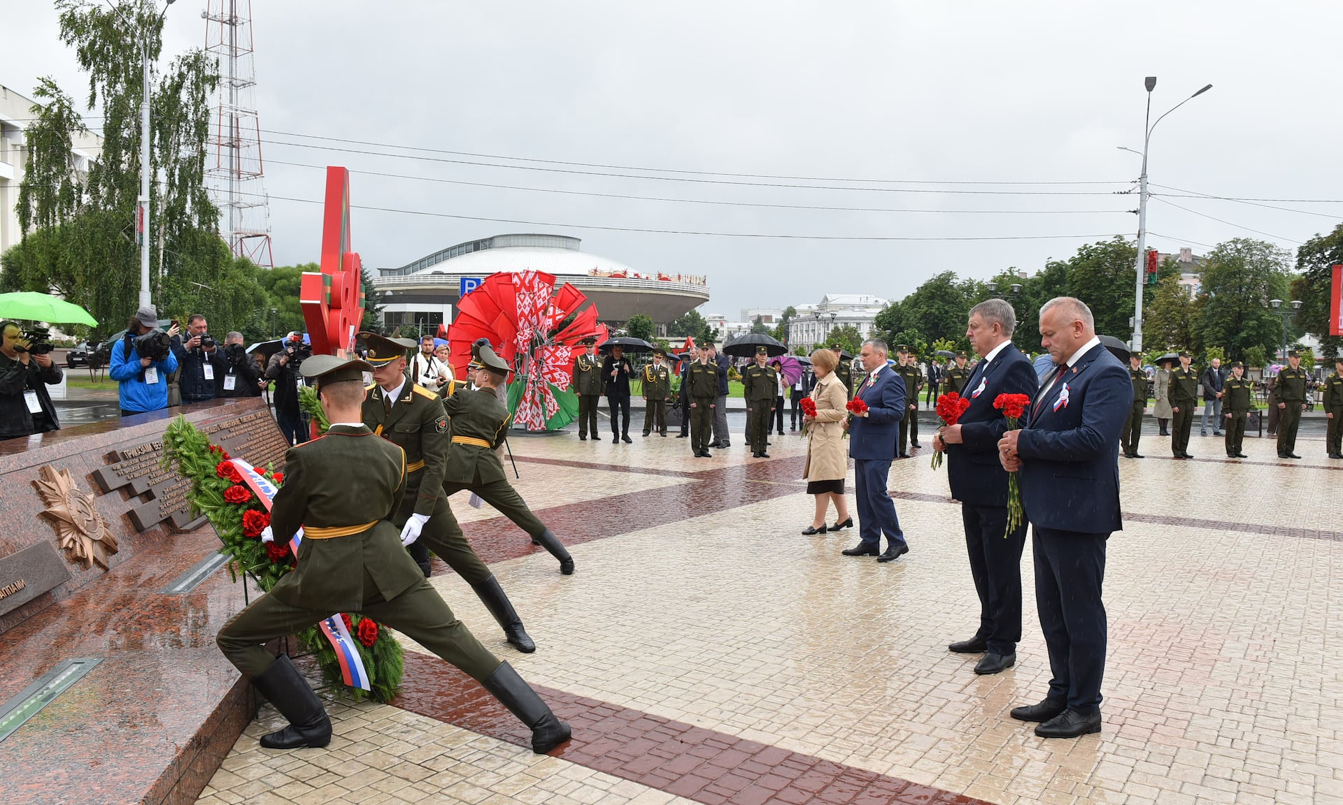 На площади Восстания участники мероприятия почтили память погибших в годы Великой Отечественной войны и жертв геноцида белорусского народа.