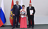 Особые слова признательности мы говорим семьям защитников Отечества — участников cпециальной военной операции. Таких сегодня в зале большинство. Низкий поклон за защиту родной земли! Супруги Чередниченко, Михаил Петрович и Наталья Александровна из Брянска, воспитали троих детей. Их сын Владислав, командир зенитного ракетного взвода, погиб в зоне проведения специальной военной операции, посмертно награжден Орденом Мужества.