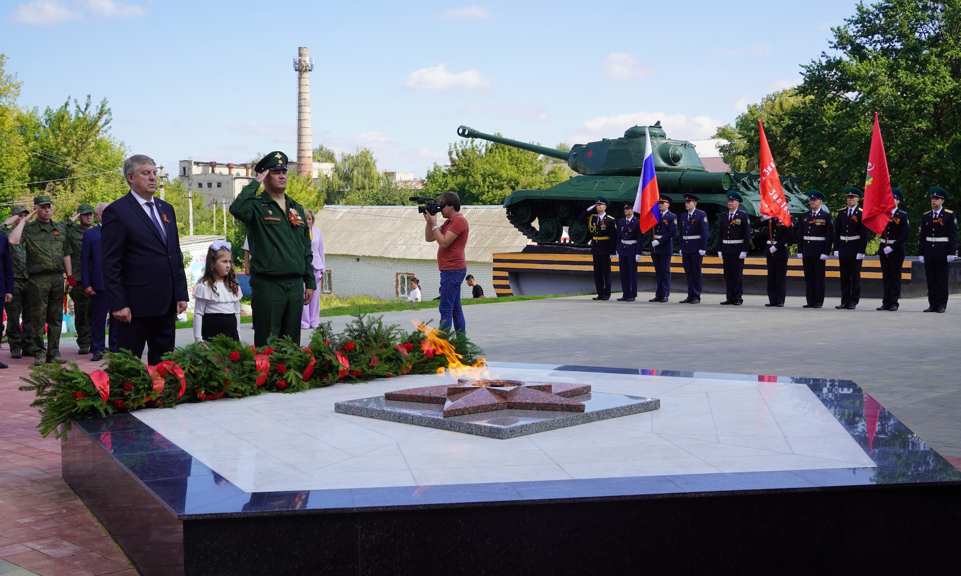 Почётное право зажечь Вечный огонь было предоставлено Губернатору Брянской области Александру Богомазу, Денису Комякову, Варваре Кулик и Артёму Быкову.