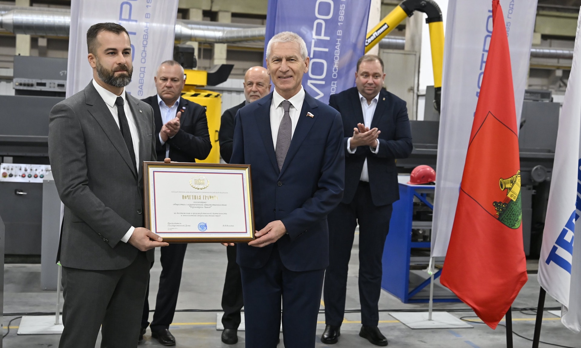 31 октября состоялось торжественное мероприятие, посвящённое вручению Почетной грамоты Государственной Думы Федерального Собрания Российской Федерации коллективу ООО «Термотрон-завод».