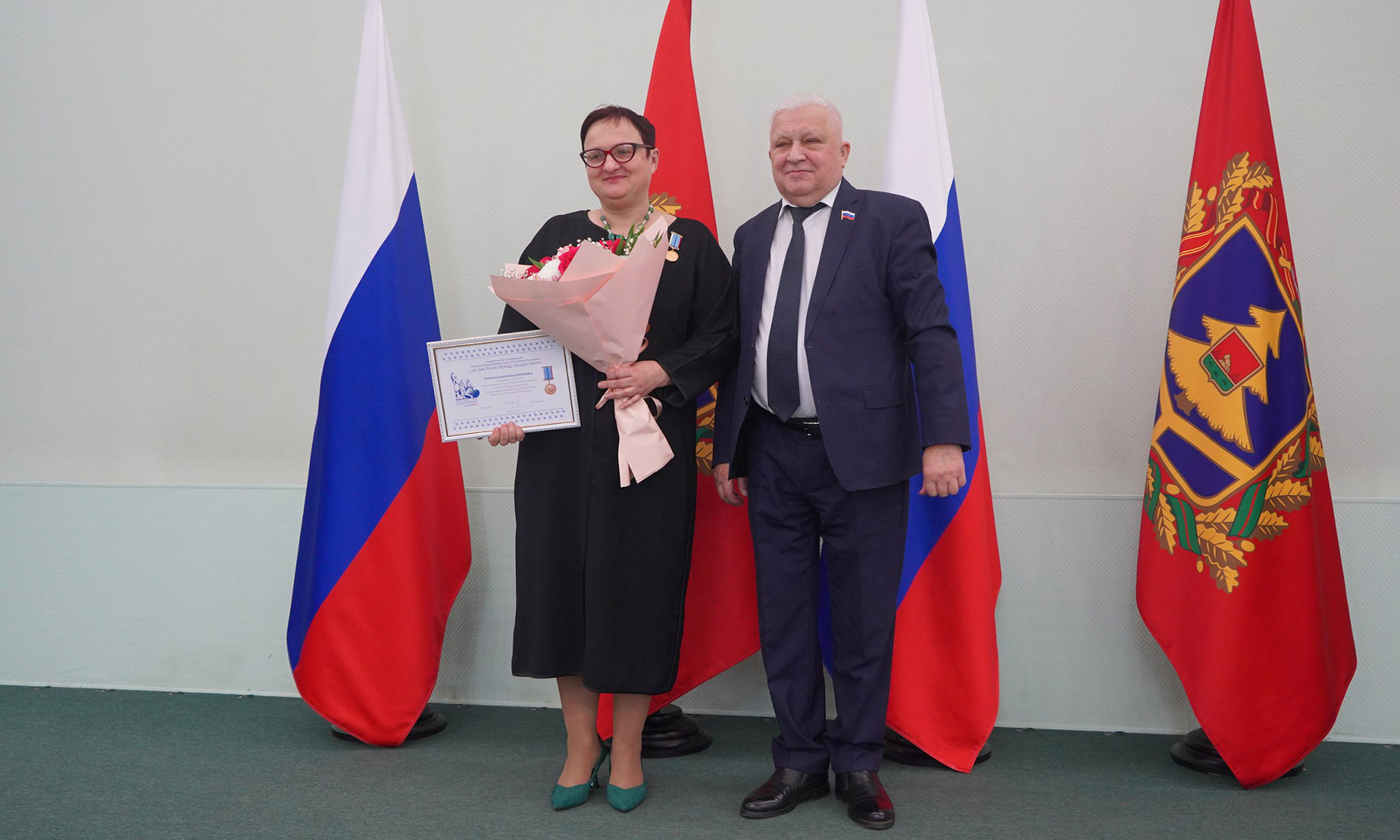 За выдающиеся заслуги перед гражданским обществом в Российской Федерации решением совета Общественной палаты Российской Федерации медалью Общественной палаты Российской Федерации «За заслуги перед обществом» награждена заместитель председателя Общественной палаты Брянской области Екатерина Карпенко.