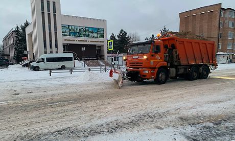 С раннего утра вышла дорожная техника на расчистку улиц в муниципальных образованиях. Основная часть работ проходит на дорогах с большой дневной нагрузкой, а после уборки участки обрабатываются противогололедными материалами.