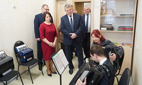 Директор школы искусств Людмила Луговая провела экскурсию по обновленному зданию и продемонстрировала современное оснащение. Вниманию гостей были представлены репетиционные классы фортепиано, скрипки, аккордеона и валторны, выставка работ отделения декоративно-прикладного творчества, а также выставки художественного отделения «Портреты героев специальной военной операции» и «Историческая».