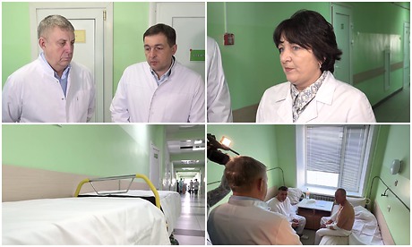 Александр Богомаз зашел в палату, где лежат двое пострадавших мужчин. Они благодарны врачам, медсестрам, которые оказали помощь быстро и профессионально. Говорят: «С нашими врачами ничего не страшно!».