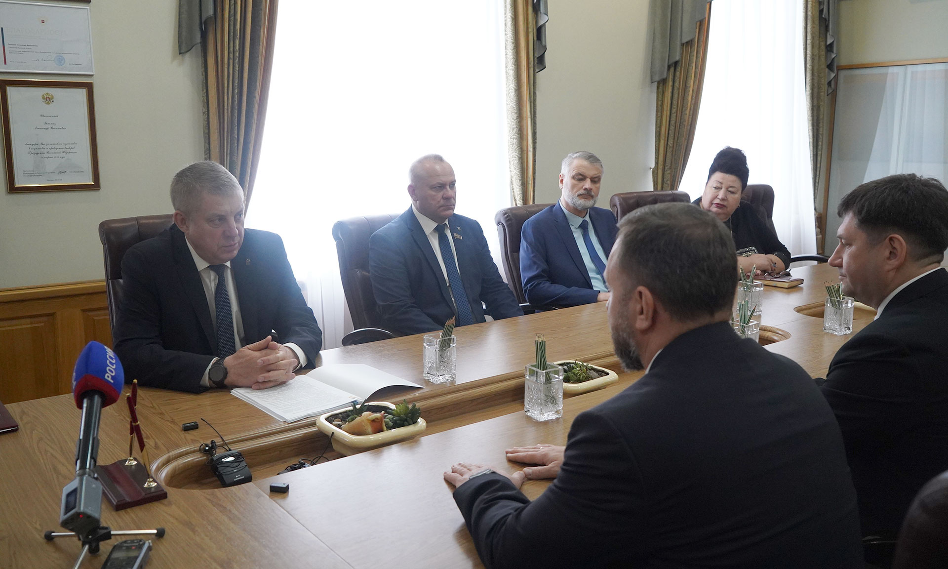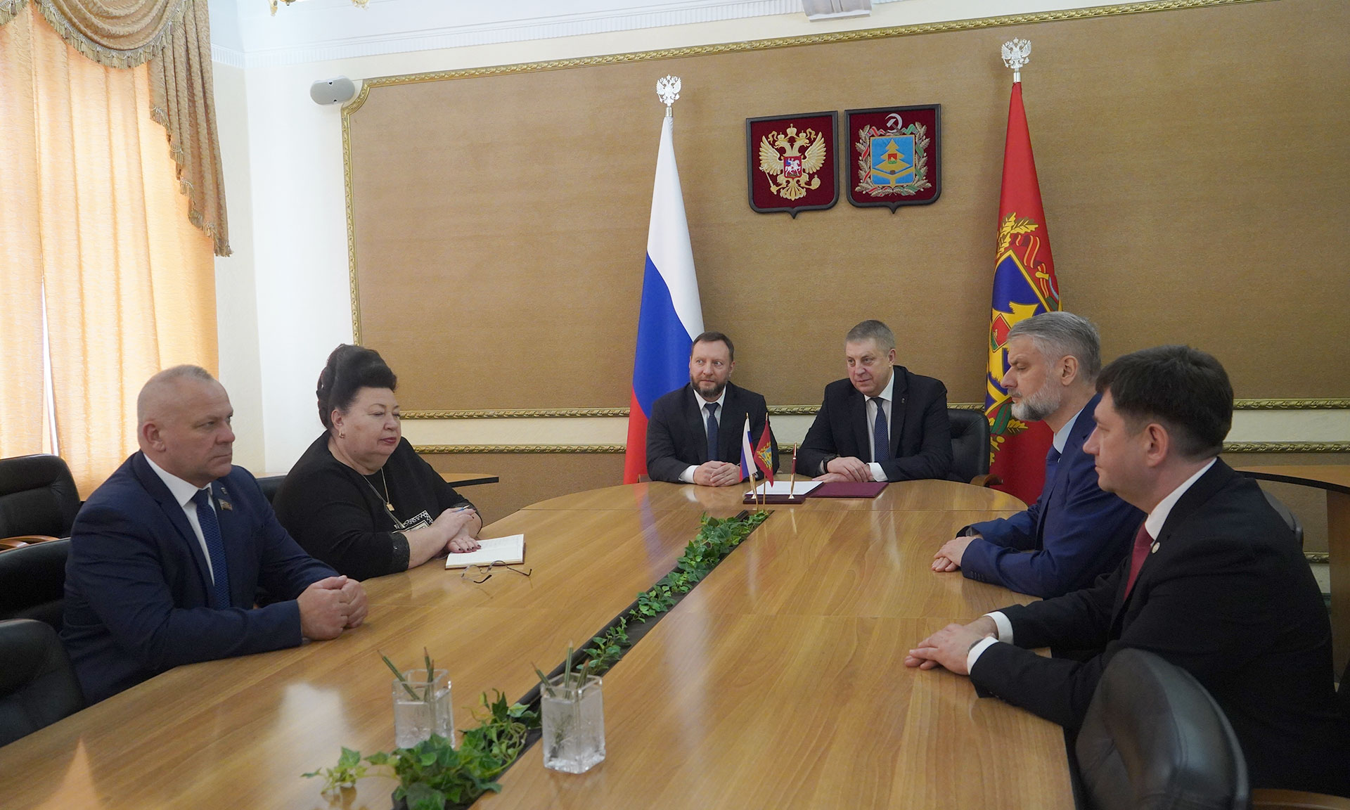 Во встрече приняли участие председатель Брянской областной Думы Валентин Суббот, главный федеральный инспектор по Брянской области Андрей Дьячук, заместитель Губернатора Галина Петушкова, руководитель управления Федеральной антимонопольной службы по Брянской области Сергей Ведерников.