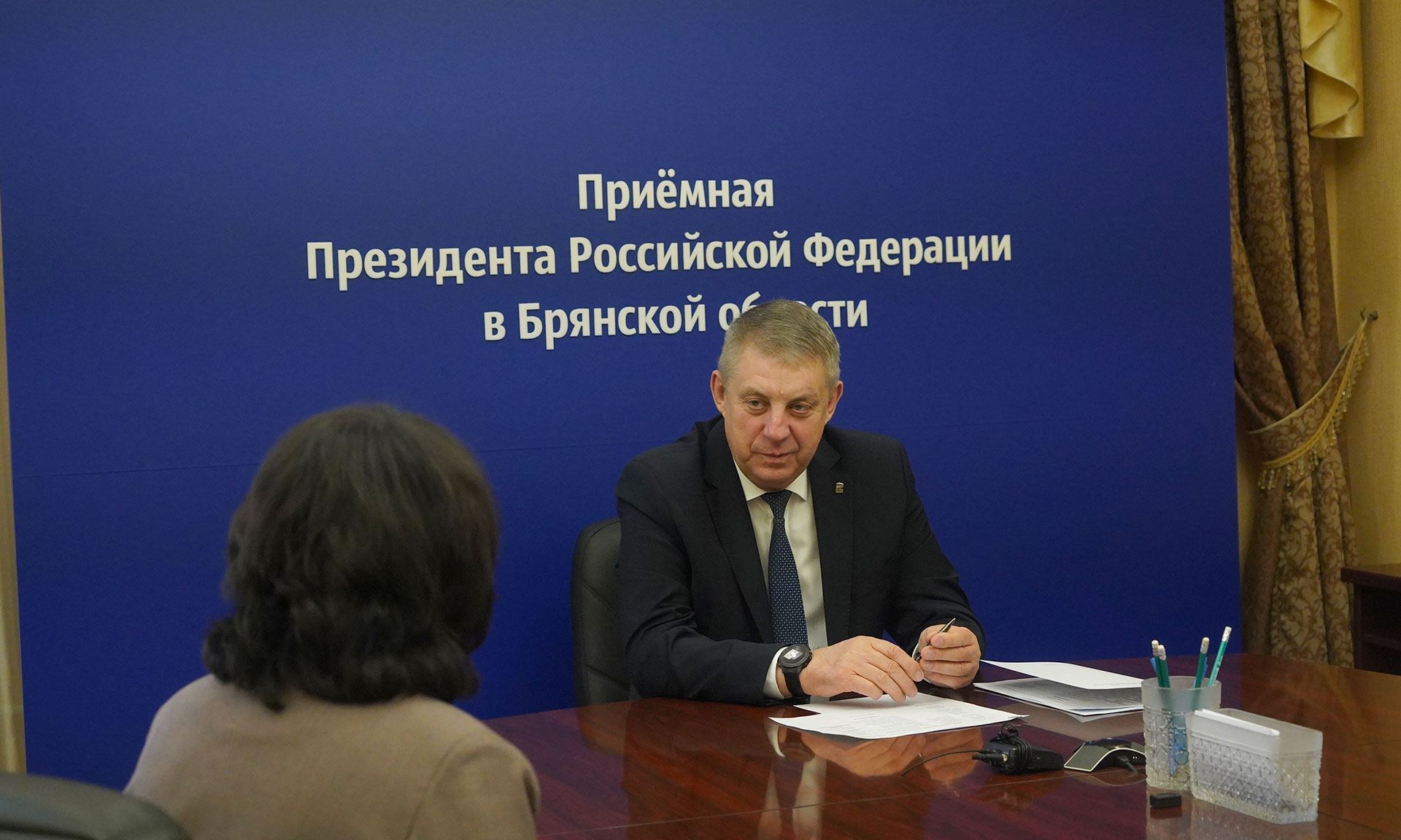 8 апреля Губернатор Брянской области Александр Богомаз провел прием граждан в Приемной Президента Российской Федерации Владимира Путина.
